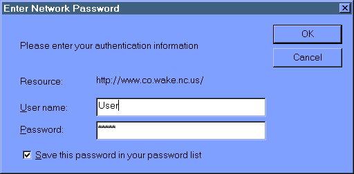 4. You will now be presented with an "Authentication" dialog box asking you for your username and password. You need to enter them to continue. Your password is case sensitive.