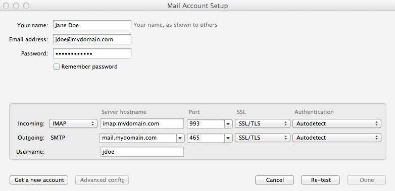Email address: Enter your main e-mail address (e.g. jdoe@mydomain.com)