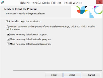 f. If you are using this Notes client for mail, then take the options to Make Notes my default... Otherwise, deselect them. Click Install.