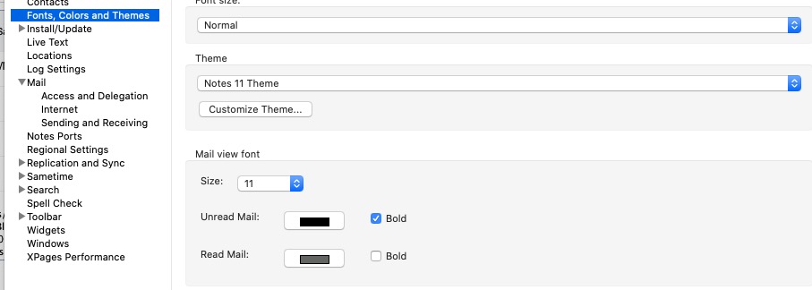 HCL Notes --> Preferences --> Fonts, Colors and Themes