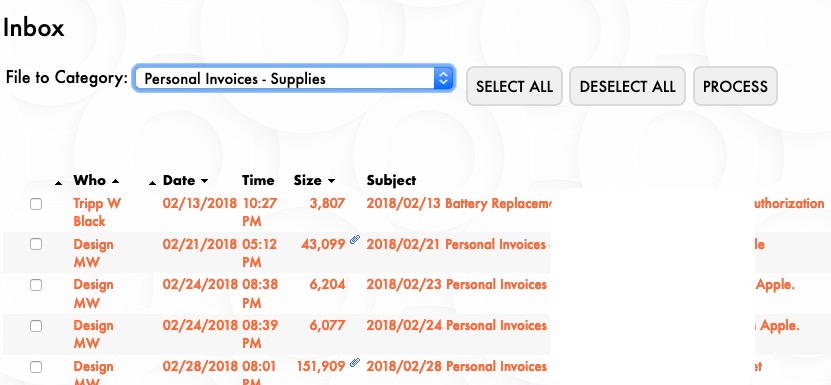 Next, check the checkbox next to the documents to file and click the Process button.